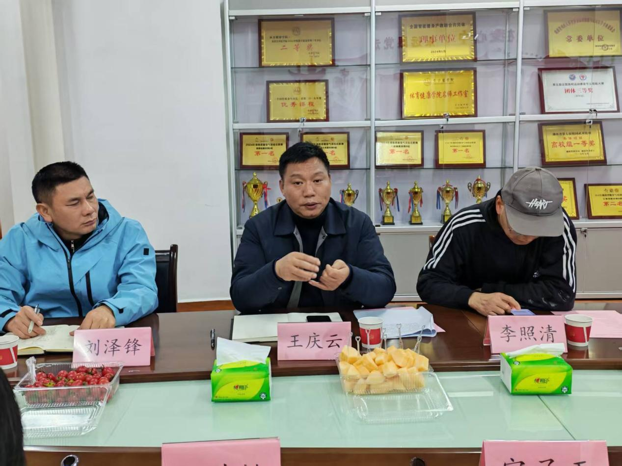 本网讯(体育部 刘泽锋 肖晖妮)为进一步加强校际合作,借鉴兄弟院校在体育学科专业建设方面的先进经验,3月23日下午,体育部负责人王庆云率调研组一行3人赴长沙医学院体育健康学院,开展学科专业建设与申报经验专项调研交流。